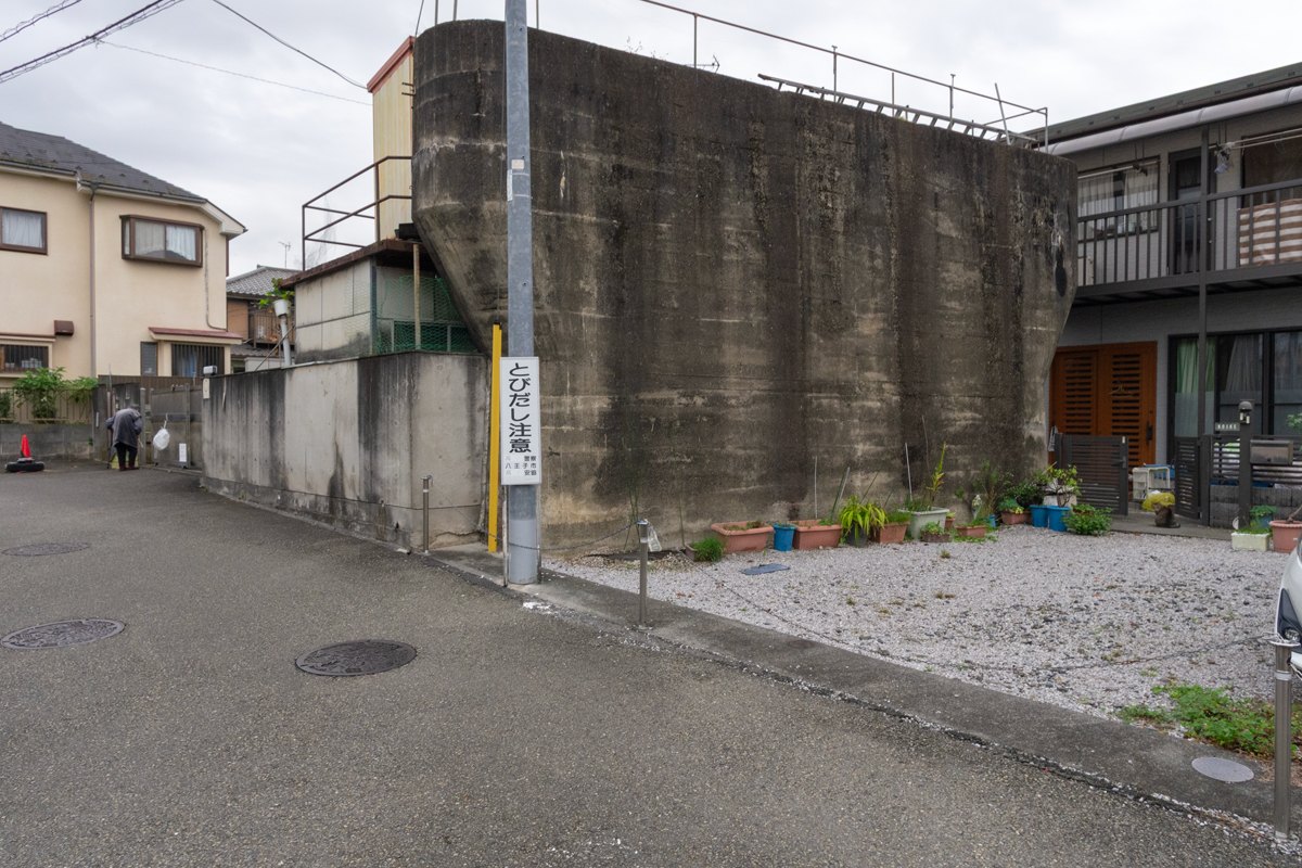 これだけ住宅開発が進んだ時代に、東京都内の廃線跡に複線規格の橋脚が残っているなんて珍しい。猫はご飯待ちと思しき佇まい。